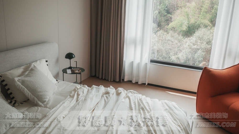 床上的寢具與墻面的柔和色調(diào)相映成趣,溫暖而安心。大面積的留白使得睡眠環(huán)境充滿自然的韻律,仿佛置身于森林的懷抱中。