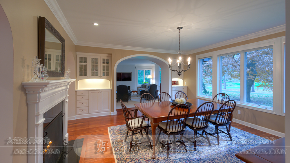 本案開放式餐廳設計,由杰美設計師通過精準的色彩搭配與軟裝搭配,營造出溫馨舒適的就餐氛圍。