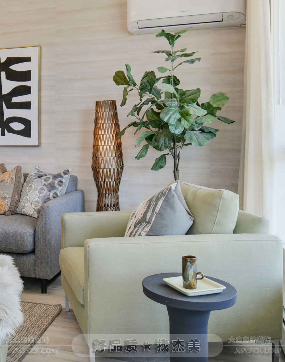 窗邊的一大盆綠植為整個(gè)客廳增添了一份生機(jī)與活力。