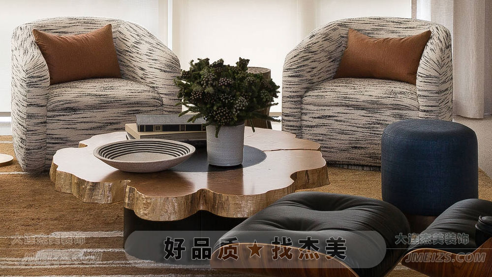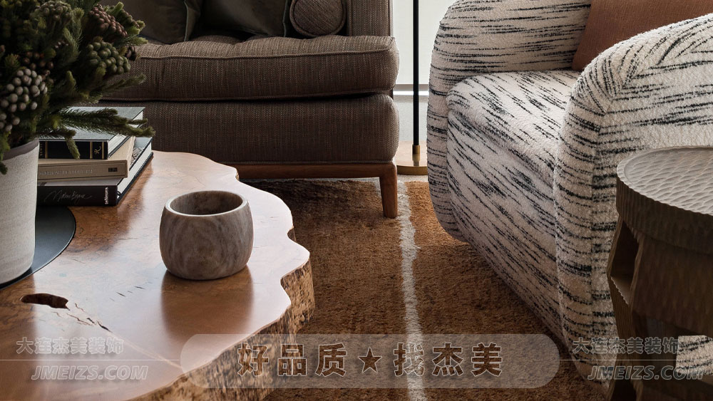 引人注目的原木隨形大桌。它保留了原木的自然形態(tài),展現(xiàn)了木材的紋理與色彩。這張桌子不僅僅是一個(gè)實(shí)用的家具,更是一個(gè)藝術(shù)品,展現(xiàn)了設(shè)計(jì)師對(duì)自然與生活的熱愛。